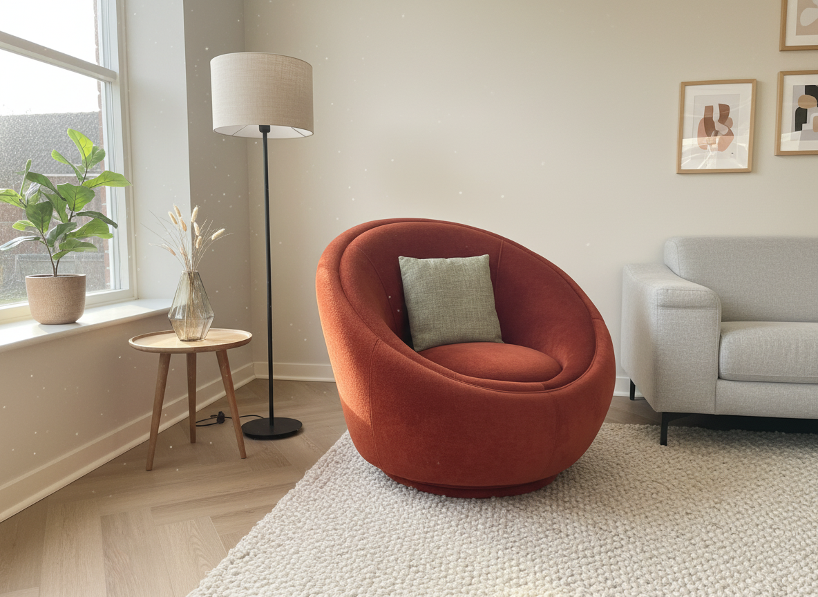 Type: Ronde draaifauteuil | Bekleding: Velours, terra | Neem contact op voor afmetingen en prijs.
